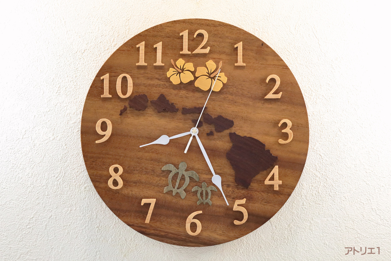 #ハワイ諸島 #掛け時計 #ホヌ #モンイーポッド #パロサント #ハイビスカス #天然木 #カスタムメイド